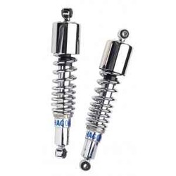 Hagon Chrome avec option n°1; proposés à 439€ ttc et livrés (la paire) ces amortisseurs, garantis 2 ans sans limitation de kilométrage, sont composés d'un corps et d'un ressort chromés (ou noir en option gratuite, à préciser lors de la commande) en acier inoxydable, et d'un cache supérieur chromé .