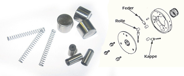 Kit de réparation pour Roue-libre de démarreur de Kawasaki Z400B de 1974 à 1980, comprenant les 3 galets, 3 poussoirs et 3 ressorts.