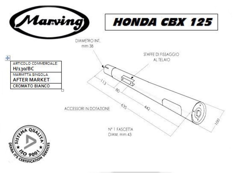 Silencieux Marving fabriqué en Italie, en acier chromé, homologué pour Honda CBX125