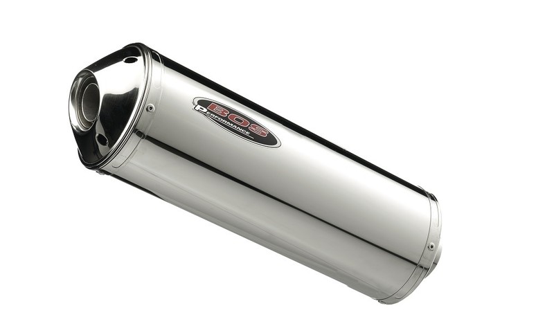 Silencieux Bos Ovale GP-2 court, en inox poli brillant, homologué avec chicane amovible, pour Suzuki GSX650F à partir de 2007